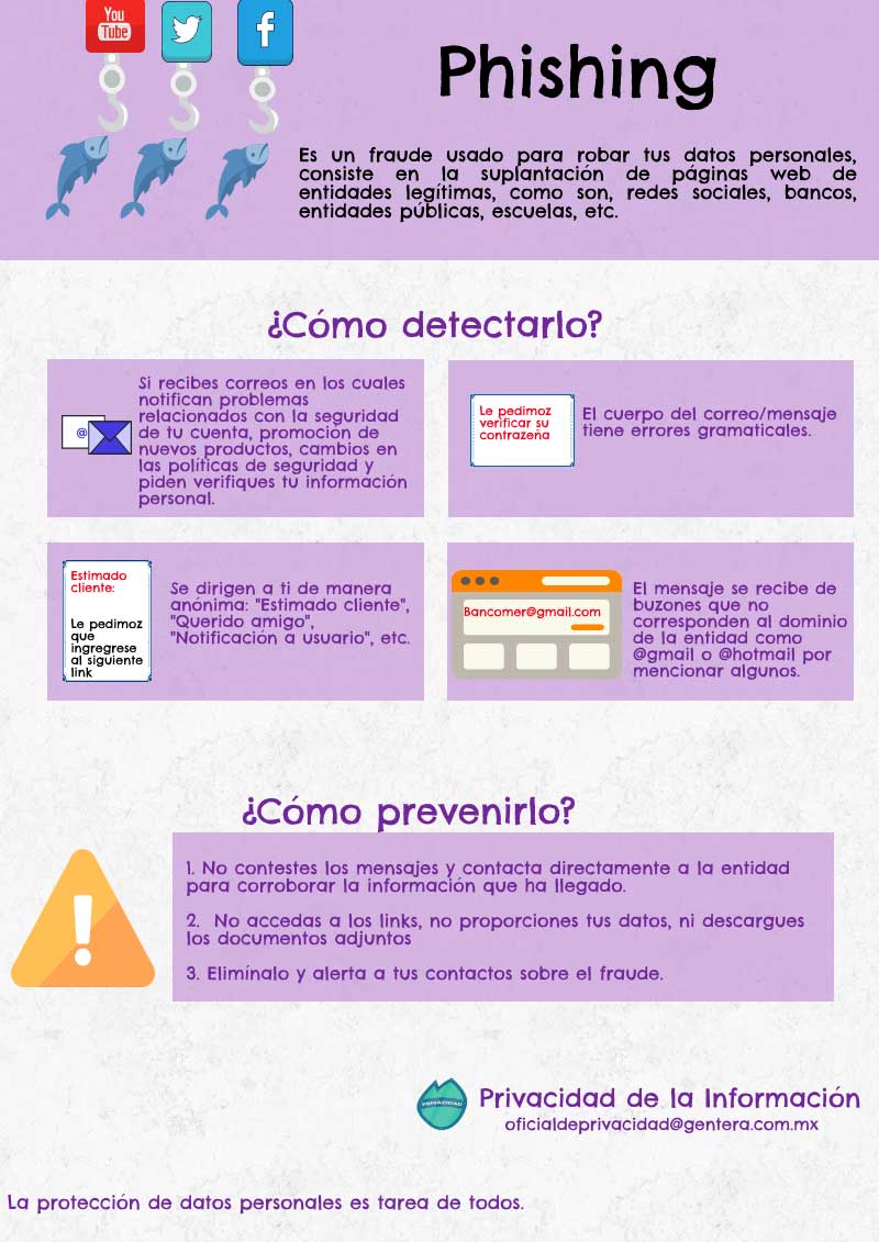 Esta técnica es utilizada por ciberdelincuentes para obtener información personal y bancaria de las personas, al suplantar una entidad legítima como puede ser un banco, red social o entidad pública.